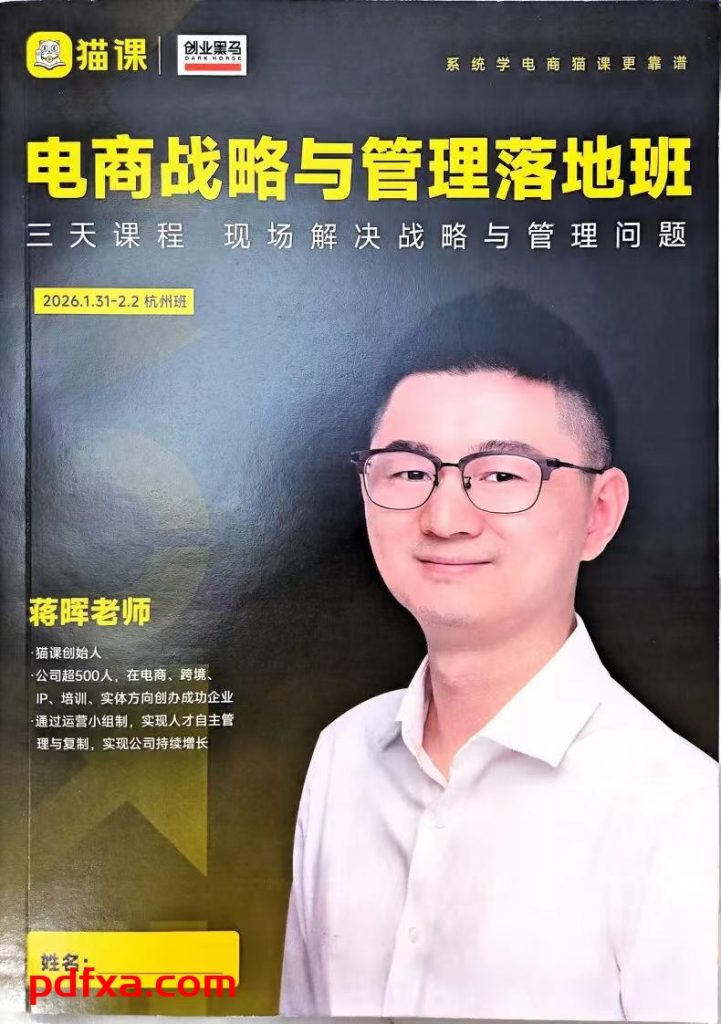蒋晖电商战略与管理落地班,26年2月最新版,年底重磅上线[庆祝][庆祝][庆祝] 开课时间,26年1月31日到2月2日,三天课程解决战略和管理问题,教你公司如何从小做到大,如何实现业绩和利润倍增! 一,【课程迭代,最新新增】 1,掌握三大智能体:各岗位KPI智能体 → 3秒生成岗位考核方案 2,OKR目标制定智能体 → 科学制定追踪目标 3,招聘选人智能体 → 自动生成面试话术与岗位需求 二,【具体交付】 2026年2月份三天两夜线下课,具体交付如下: 1、全程录音,电子档1套 2、全程逐字稿,实体书1本 3,学员手册,实体书1本 4,电商20个岗位招聘方案大全,实体书1本 5,电商薪酬全岗位一本通,实体书1本 6,全程ppt排版,实体书1本 7,课程配套表格资料电子档1套 本次交付全面升级,包含2套电子档+5本实体书,7样交付,绝对超值[庆祝][庆祝] 三,【具体定价】定价,官方线下9980一位,只卖20位,每位499,凑个门票回个血 2月6日-2月9日,499 2月10日-2月16日,599 年前大家都可以收到,过年期间完全可以学习,全新升级,之前买过的也建议再买1份,这次迭代的确实挺多的 需要的伙伴转499+最新地址!