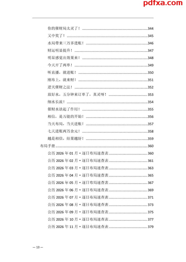 新版的《财富新经·2026版》与之前的版本最大的不同,有以下几点: 1.增加了《2026年·河洛催财水法·布局手册》,手册含有一年365天每一天的布局方法和策略。 2.增加了《2026年·河洛催财火法·布局手册》,从一年当中精选了100局的布局方法和策略。 3.新增超级炸裂的《火上浇油的2026年,普通人该何去何从?》,掌握了这个,你就可以顺势而为、抢抓机遇。 4.更新了九大布局的最新布局方法,依照这些方法就可以让自己的财运立于不败之地。 以上的价值加起来,至少5000元以上,甚至是无价的……