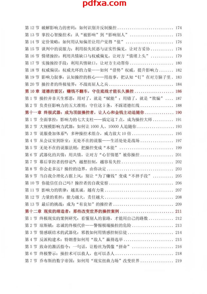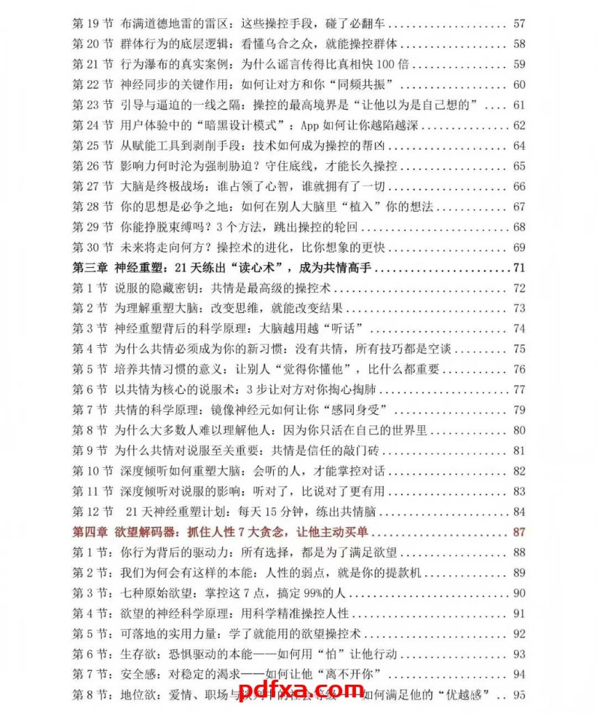 《操控者圣经》—— 洞悉人性,执掌人心,轻松变现 这是一套只为掌控者而生的终极心法。它不教你旁门左道的算计,而是帮你参透人性底层密码,让你从被动被操控者蜕变为主动掌舵人。市面上谈影响力的书琳琅满目,但能真正带你手握 “人心钥匙” 的唯有这一本。 它将操控的智慧拆解为可落地的实战体系:从识别大脑漏洞的底层逻辑,到共情破防的沟通艺术,再到正向赋能的行动闭环,每一步都在帮你锻造无往不利的核心竞争力。所谓掌控,并非强取豪夺的霸权,而是你顺人性一步步铺就的结果。 现在翻开它,就是你执掌人生主动权的第一步。